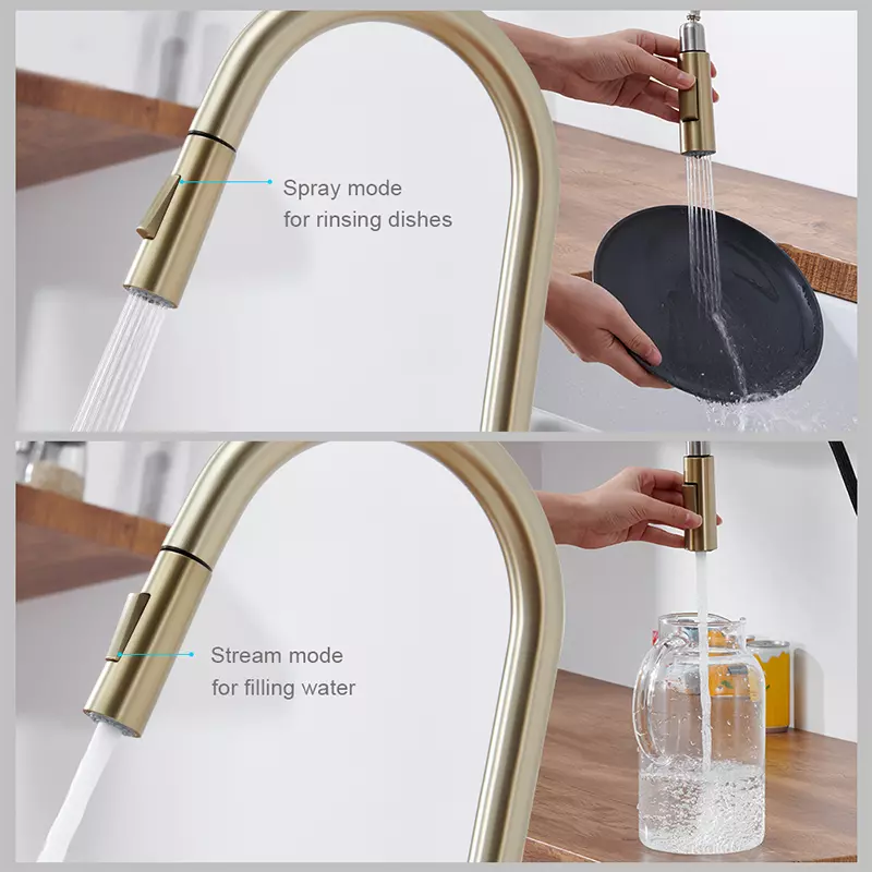 DUAL MODE SETTING - Your kitchen faucets with pull down sprayer provides soft aerated stream and splash-free powerful spray due to its hard rubber sprayer holes. 360 degree kitchen sink faucets sprayer, the switch can be placed in every position as you like.