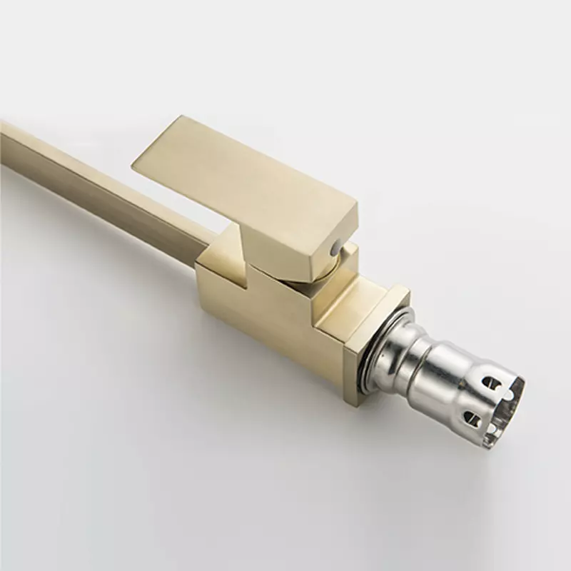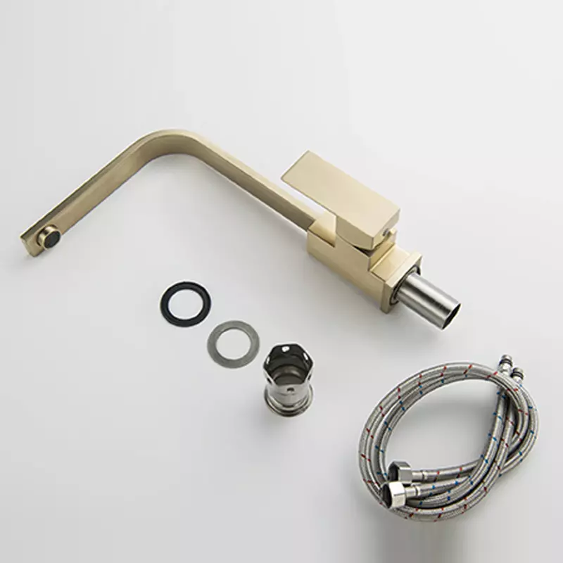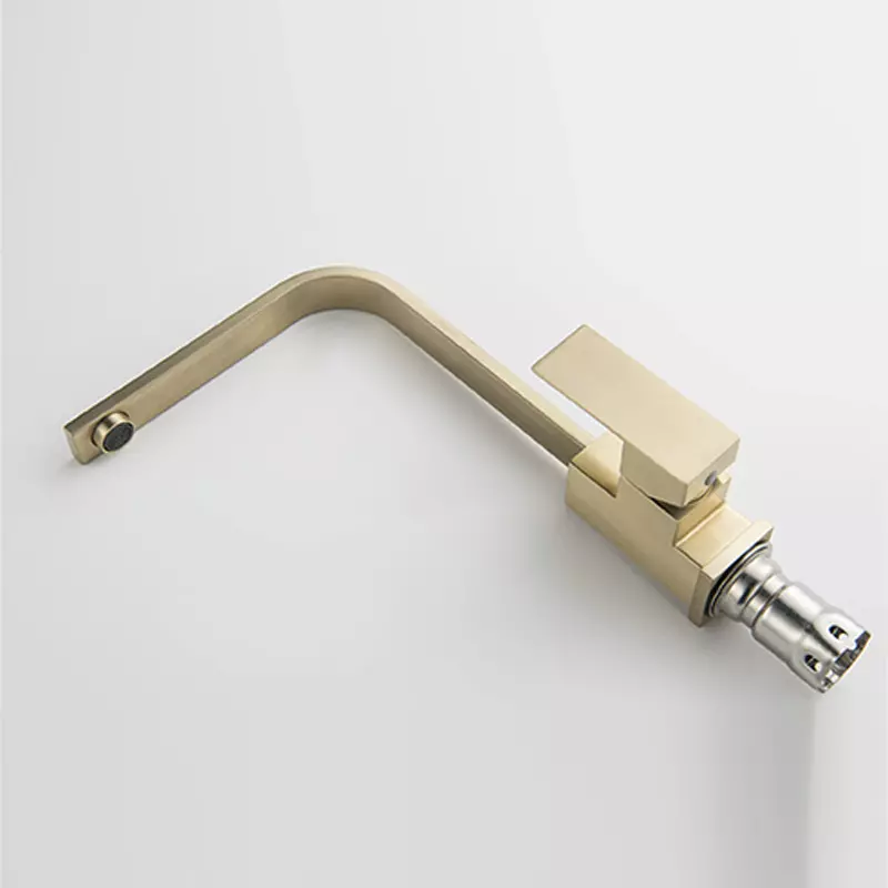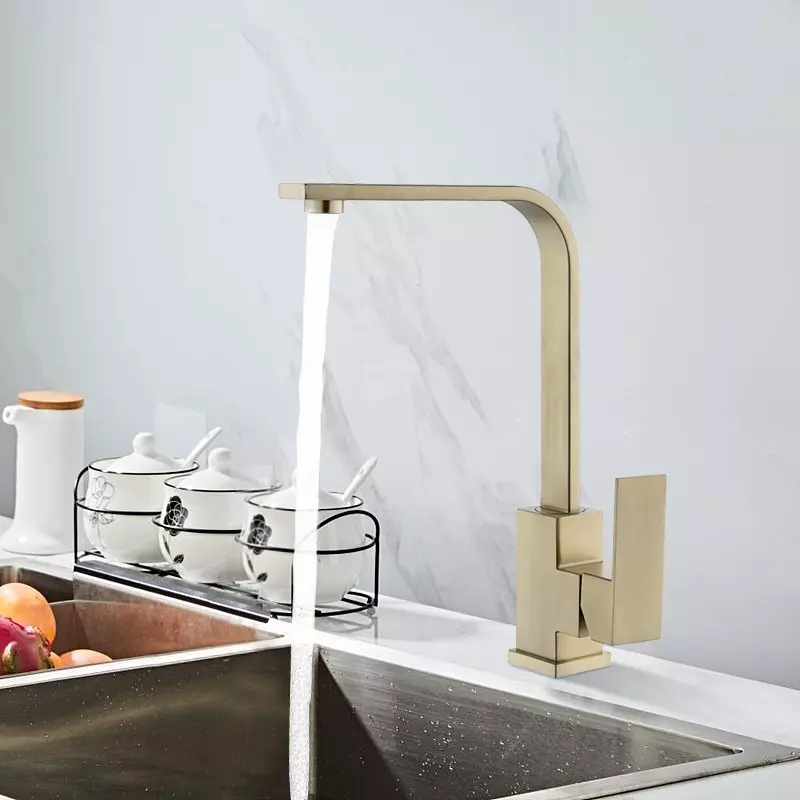 Fashion Home Single Handle High Arc Kitchen Faucet Square Stainless Steel Brushed Gold,Commercial Single Hole Kitchen Sink Faucet,Modern One Hole Bar Sink Faucet